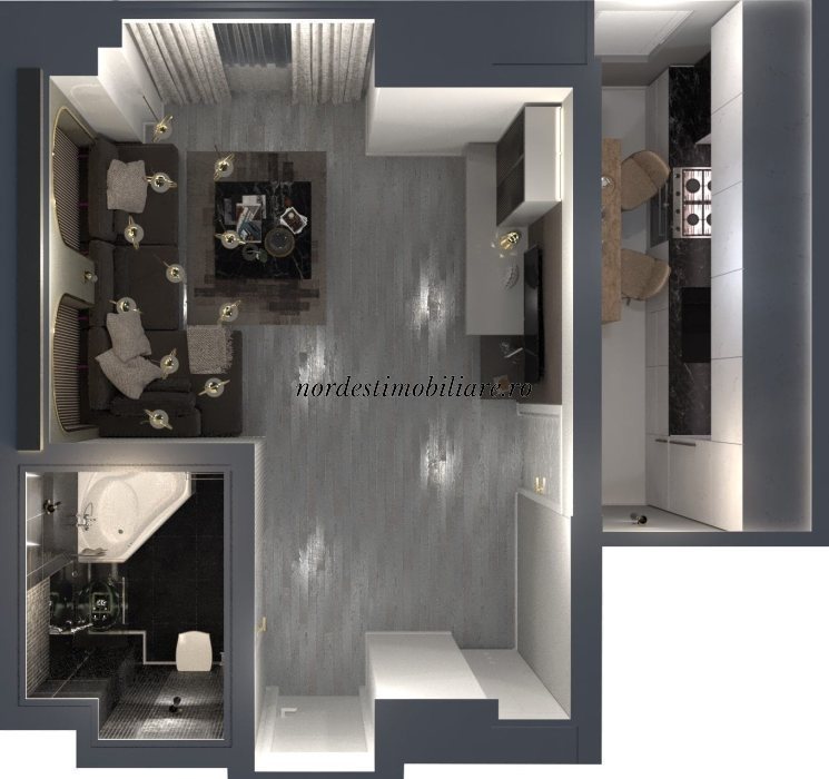 - apartament 1 camera, suprafata 32 mp, pret 41 500 euro la cash, pret 43 500 la 50 / 50, pret 45 500 € la credit sau cash cu minim 10% avans;